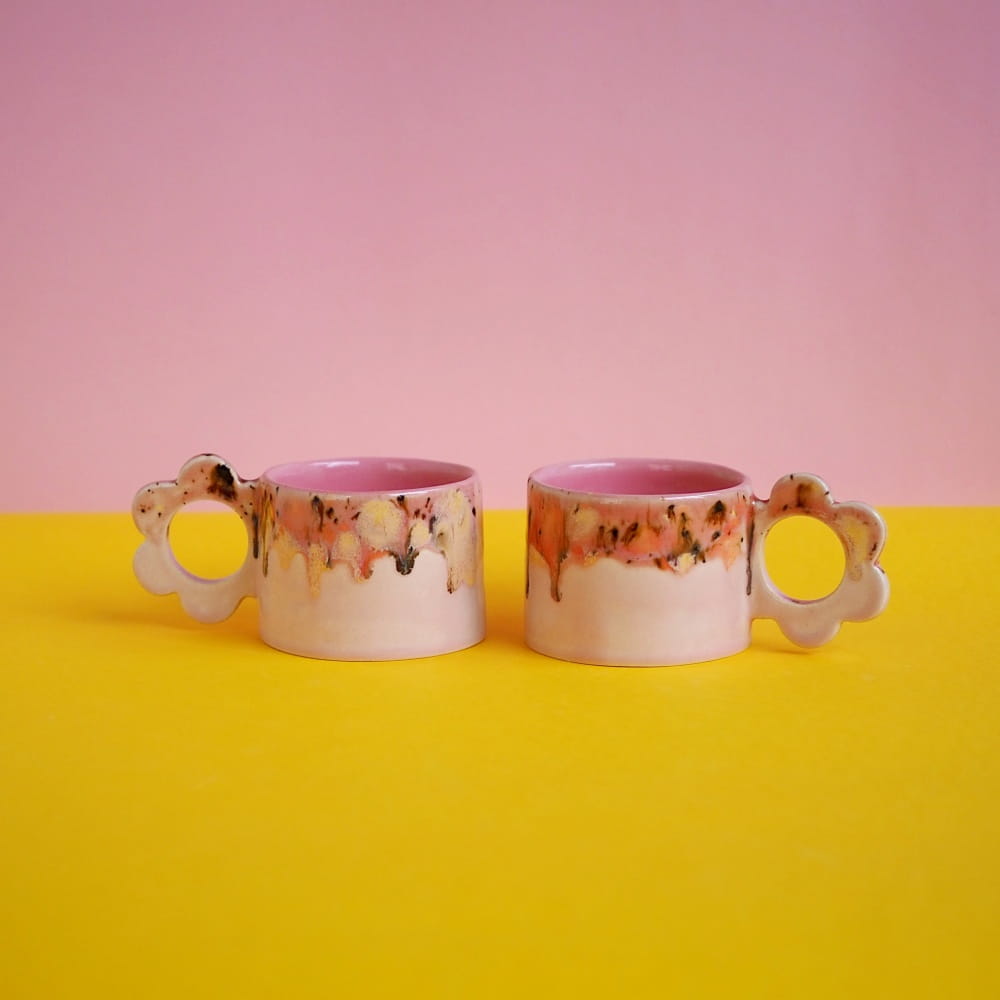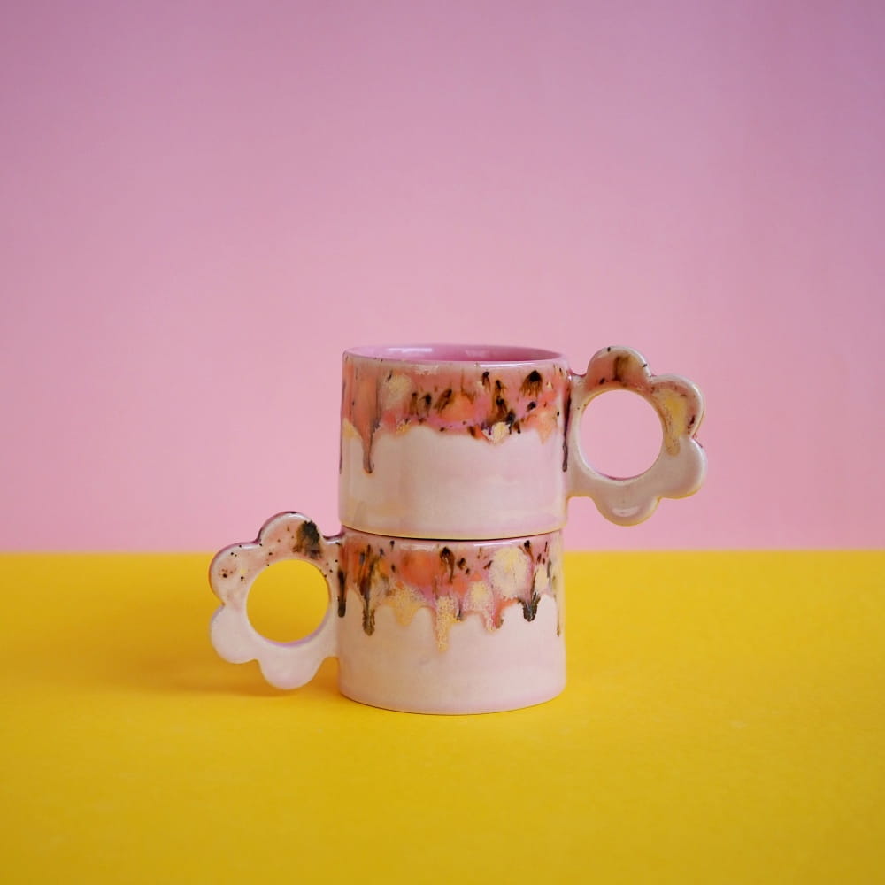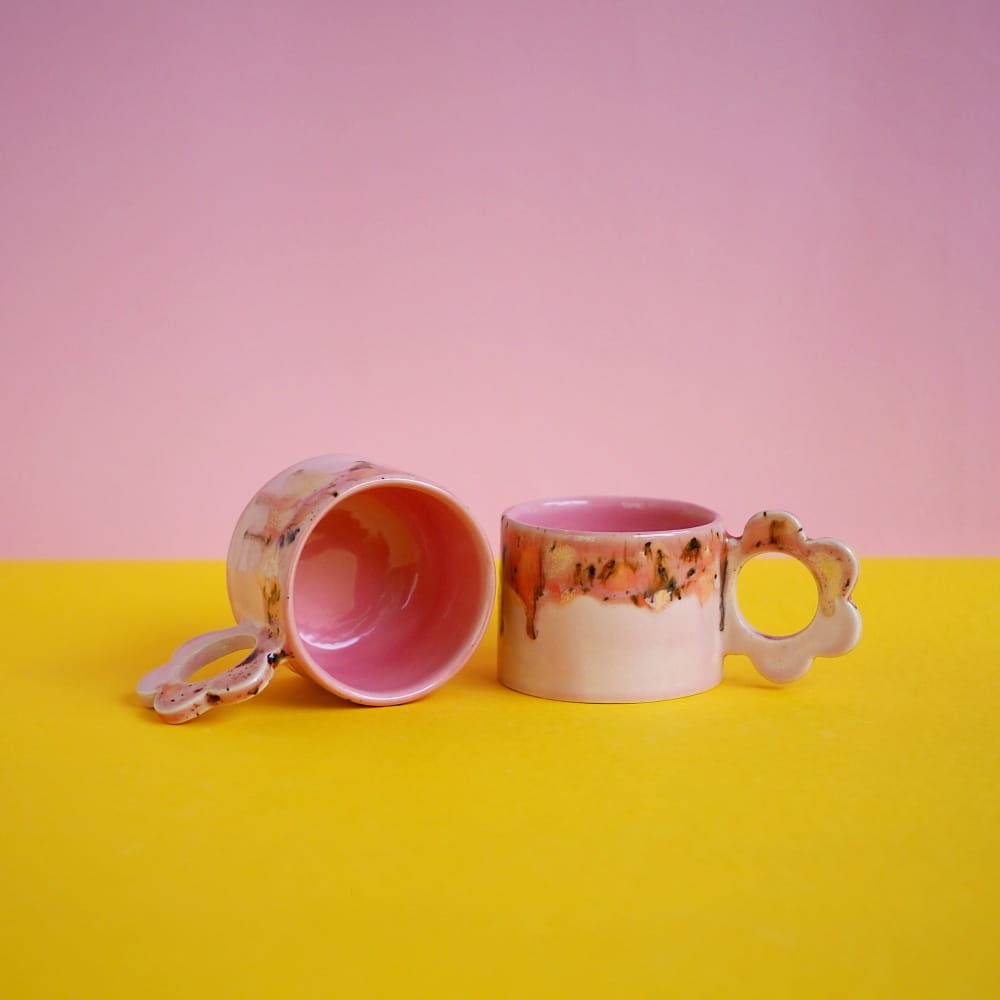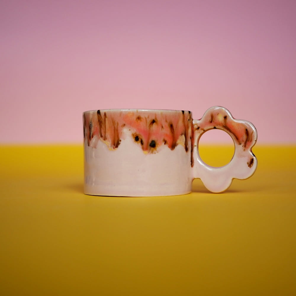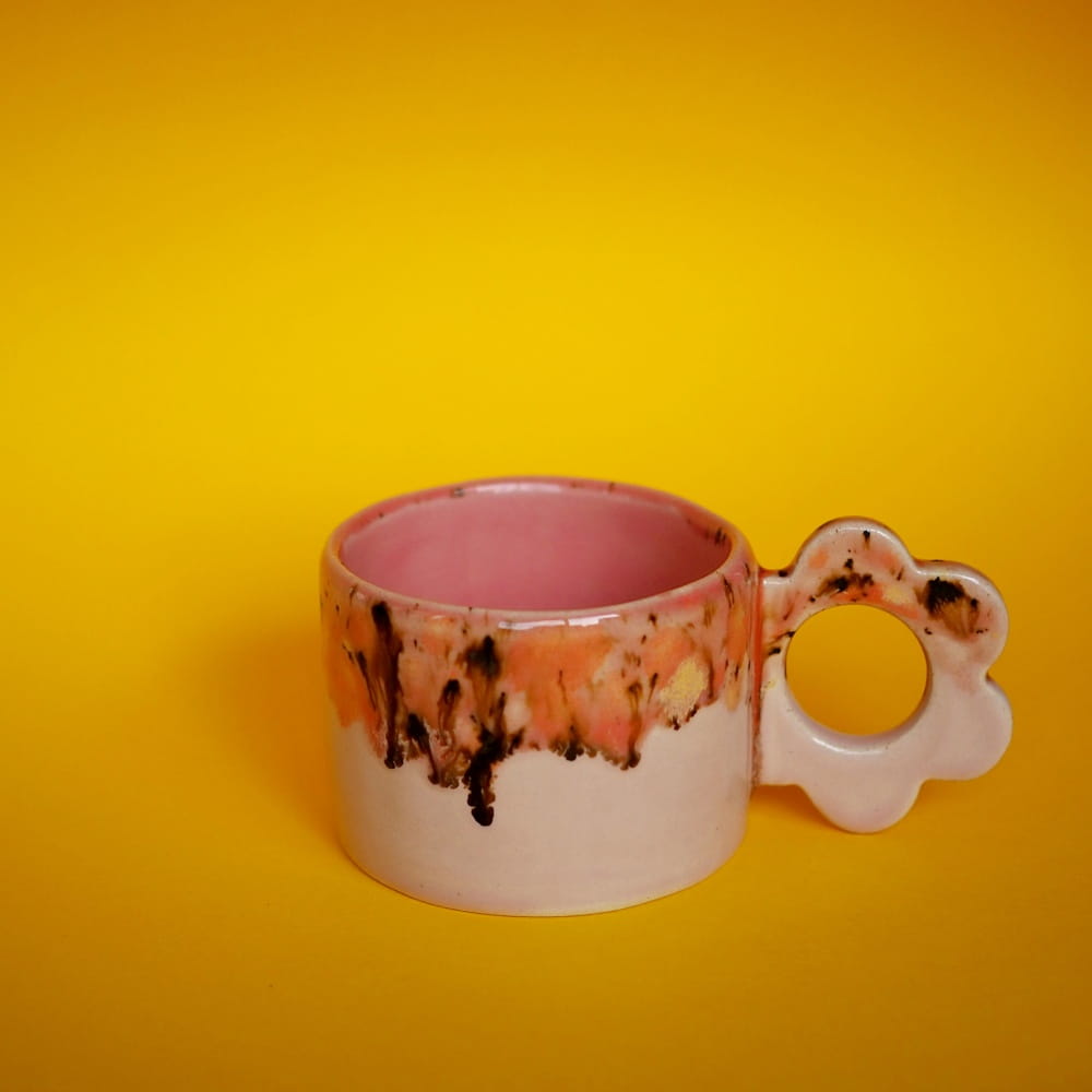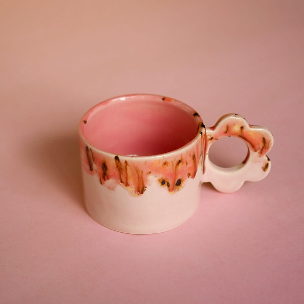 Ceramiczny kubek CANDY FLOWER z kwiatkowym uszkiem, ręcznie robiony i szkliwiony o pojemności ok. 200 ml.